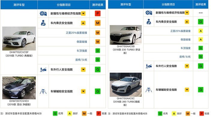 其中INSPIRE耐撞性與維修經(jīng)濟性指數(shù)測試來看,中保研給出的是P(較差),主要在于其車輛維修經(jīng)濟性得分較低,其中正面碰撞得分僅為9分(滿分24分),而追尾碰撞得分為0分(滿分24分);車頭耐撞性要好于尾部,分別為5.5分和3分(滿分6分)。這也側面反映出該車型維修比較高。由于廣汽雅閣是2018年測試的,所以未有這項測試結果,猜測兩者在維修費用上沒有太大差別。