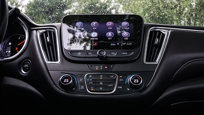 中控臺中央的8英寸觸控屏集成了安吉星車載4G LTE、車載WiFi和Apple CarPlay車載交互系統(tǒng)等,可謂功能強大。液晶屏下方配備了物理按鍵和旋鈕,操作起來很容易上手。