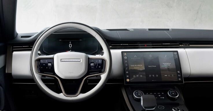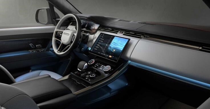 內(nèi)飾部分,全新攬勝運動版和全新攬勝的差異并不明顯,依舊配備了13.7英寸全液晶儀表盤,還有13.1英寸懸浮式中控屏,中控臺整體的造型設(shè)計稍有不同,新車采用的是三輻式多功能方向盤,并且空調(diào)控制區(qū)有所抬高,設(shè)置了無線充電面板。