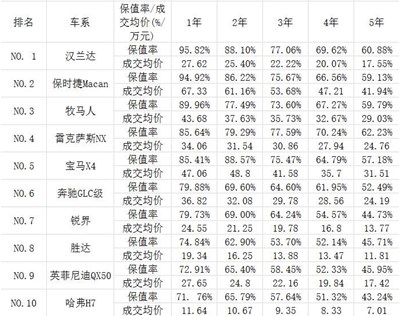 在中型SUV里面,排在保值率排行榜前十的分別是漢蘭達(dá)、保時(shí)捷Macan牧馬人、雷克薩斯NX、寶馬X4、奔馳GLC、銳界勝達(dá)、英菲尼迪QX50哈弗H7。