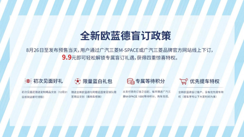 此外,為回應(yīng)全國車迷的熱切期待,廣汽三菱還在車展上正式宣布開啟全新歐藍德限時盲訂活動。8月26日起,僅需9.9元即可在廣汽三菱APP或廣汽三菱品牌官方網(wǎng)站參與盲訂,輕松解鎖四重驚喜好禮:初次見面禮,下訂即送定制精品文創(chuàng)(12月31日前到店即可領(lǐng)取);限量藍白禮包,可在完成購車核銷后獲贈全新歐藍德與阿根廷國家足球隊特別定制的限定周邊文創(chuàng);專屬等待積分禮,從支付訂金之日起,每天可獲得1000分等待積分,在購車兌現(xiàn)后可憑積分換取超多精美文創(chuàng)禮品;還有優(yōu)先提車特權(quán),讓你先人一步,上手新車。驚喜福利送不停,感興趣的車友們千萬不要錯過。