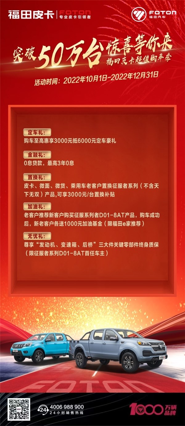 突破50萬臺,福田皮卡百萬壕禮大放送,只有你想不到!