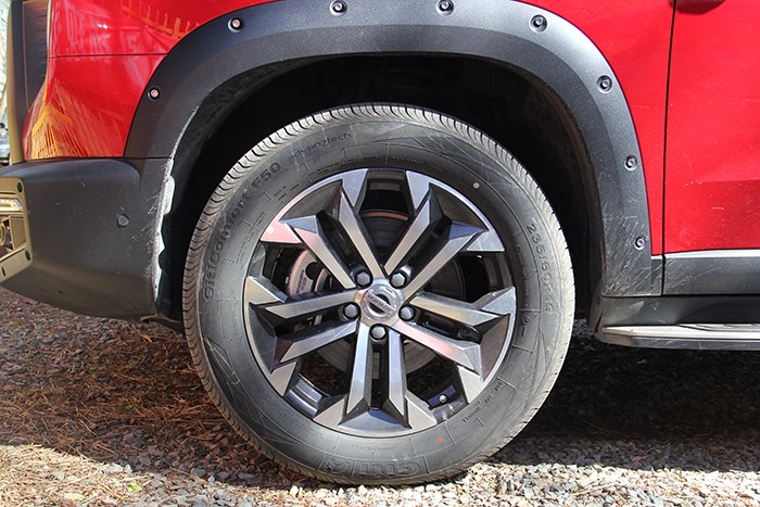 極具設(shè)計(jì)感的雙色五幅輪轂,在造型上不輸給任何進(jìn)口車型。輪胎方面它采用了偏向舒適性的佳通GitiComfort F50型號(hào),前后輪胎尺寸同為235/60 R19。輪眉上裸露的鉚釘是我最喜歡的外觀設(shè)計(jì)之一,不同于有些車型一味地堆砌夸張?jiān)氐淖龇ǎ蠊吩谕庥^設(shè)計(jì)上盡量保持了克制,在粗獷與精致間達(dá)到了很好的平衡。