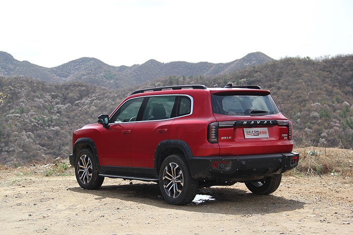 車尾在設(shè)計(jì)風(fēng)格上與車頭保持高度一致,沿用粗獷造型中加入圓潤線條的理念,排氣采用隱藏式設(shè)計(jì),敦實(shí)的大尺寸護(hù)杠“托起”飽滿的尾部,意在營造自己充滿力量感的野性形象。大狗的最大接近角24°,最大離去角30°,最小離地間隙200mm,作為意在向硬派越野靠攏的城市SUV車型,這份數(shù)據(jù)還是很亮眼的。