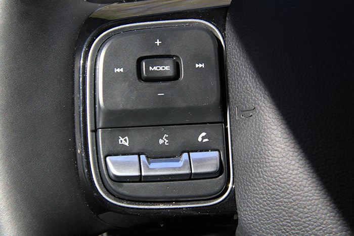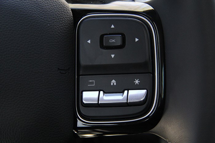 三幅式方向盤握感較為飽滿,造型時(shí)尚立體,看起來很有力量感。方向盤操作時(shí)轉(zhuǎn)向有一定虛位,指向并不十分精準(zhǔn),但轉(zhuǎn)向阻尼調(diào)教的不錯(cuò),保持了一種相對(duì)柔順的感覺。方向盤的多功能按鍵包含了儀表信息控制、中控信息控制、語音交互、藍(lán)牙電話等功能,按鍵大小適中,靈敏度與手感反饋表現(xiàn)出色。