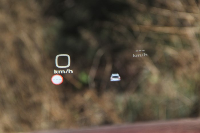 抬頭顯示會(huì)實(shí)時(shí)顯示駕駛時(shí)最為關(guān)注的信息,如時(shí)速、當(dāng)前路況限速、車身周圍情況等,如果你要是用車載導(dǎo)航或藍(lán)牙電話時(shí),它還會(huì)顯示導(dǎo)航信息與通話信息,可以說在這一方面,大狗做的是很不錯(cuò)了,功能設(shè)計(jì)十分人性化。