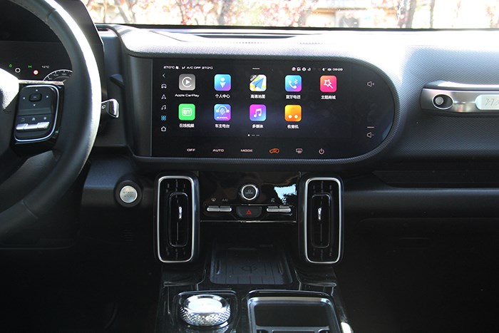 大狗采用旋鈕式換擋方式,造型精致,為車內(nèi)節(jié)省了不少空間。旋鈕操作的換擋速度也令人滿意,只是D擋與M擋設(shè)置在了一起,剛接觸時(shí)容易擰錯(cuò),我在駕駛時(shí)曾聽到發(fā)動(dòng)機(jī)運(yùn)行聲音不對(duì)時(shí),才發(fā)現(xiàn)誤掛了M擋,所幸影響不大,切換到D擋也比較方便,不過如果能在換到M擋時(shí)可以增加特殊的提示音就更好了。