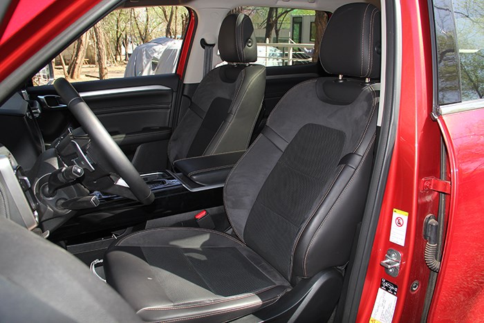 座椅采用拼接式設(shè)計(jì),整體上不算寬大,填充物較為柔軟,兩側(cè)的翻毛材質(zhì)提升了人與座椅的摩擦性,在一定程度上彌補(bǔ)了因坐墊長度等因素引起的包裹性一般的現(xiàn)狀。