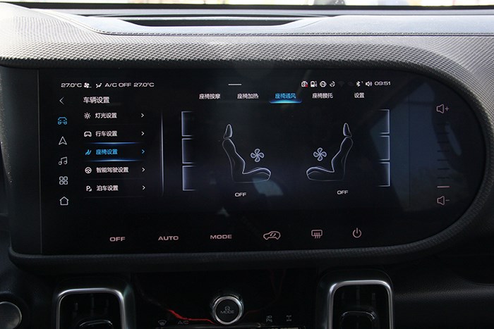 關(guān)于座椅這里值得說的一點(diǎn)是,哈弗為大狗追獵版在提供了座椅加熱/通風(fēng)/腰托電動(dòng)調(diào)節(jié)外,還設(shè)計(jì)了座椅按摩功能,實(shí)際體驗(yàn)下來效果不錯(cuò),按摩幅度可調(diào),但幅度并不激進(jìn),以保證行車安全,這套按摩系統(tǒng)可以有效緩解因長時(shí)間駕駛而產(chǎn)生的背部疲勞感。