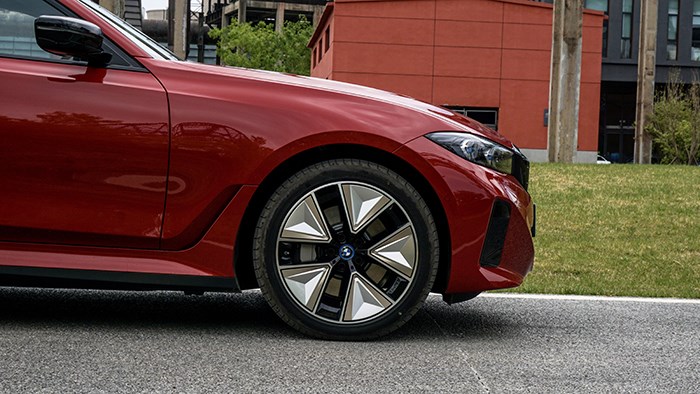 車輛側(cè)面左前翼子板處增加了充電接口,同時,寶馬i3用的是19英寸半封閉式五幅輪輞,屬于新能源車的調(diào)性,并且也能對續(xù)航有一點幫助。前輪胎規(guī)格225/45 R19,后輪胎規(guī)格245/40 R19。