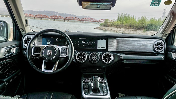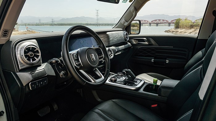 拉開(kāi)車門,可以看到坦克300的內(nèi)飾采用T型的布局,橫平豎直的造型與其硬派越野車的定位相呼應(yīng)。
