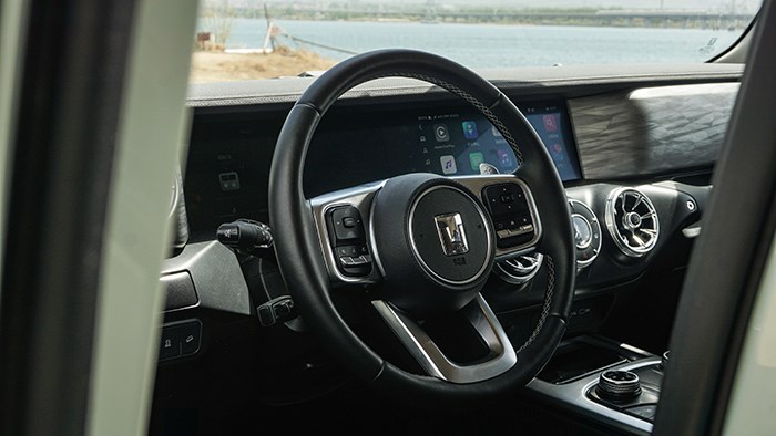 方向盤很有力量感,握感舒適,氣囊蓋上還使用了縫線以及圓環(huán)進(jìn)行點(diǎn)綴,營(yíng)造出不錯(cuò)的精致感。