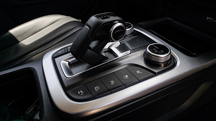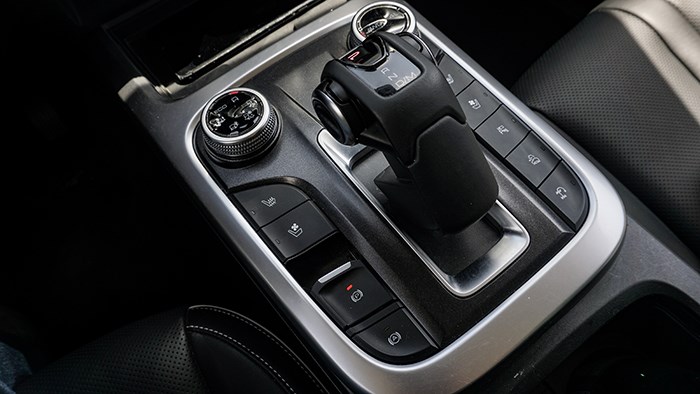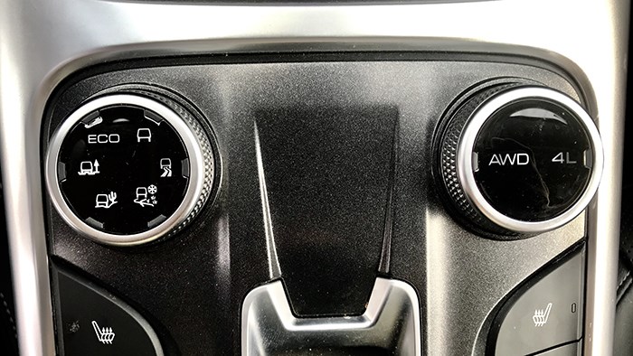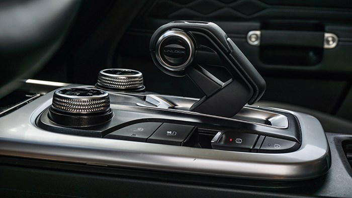 換擋機(jī)構(gòu)為飛機(jī)操作桿的樣式,造型很有科技感。兩側(cè)則是一些常用的功能鍵選擇,包括越野時(shí)常用的功能都可以一鍵開(kāi)啟或關(guān)閉。