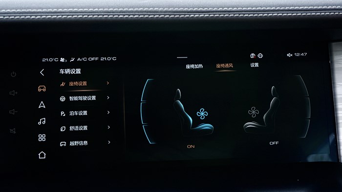 前排座椅的填充物比較厚實(shí),恰到好處的支撐對(duì)身體非常貼合,開(kāi)車時(shí)間長(zhǎng)了也不會(huì)明顯覺(jué)得疲勞。主副駕駛座椅的加熱及通風(fēng)功能均可在換擋桿區(qū)域一鍵開(kāi)啟,分三檔調(diào)節(jié)。