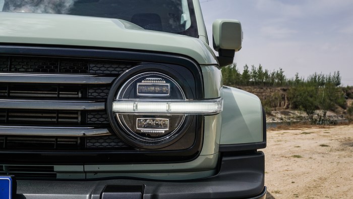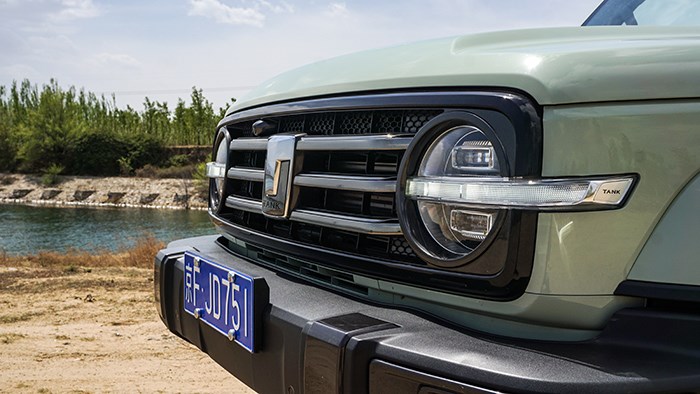 這款車的配色是十分招人喜歡的,以至于跑在路上的回頭率很高,官方對(duì)這款顏色的命名是種草綠。有一種大自然、小清新的味道。從外觀上看,坦克300的車頭是硬朗的風(fēng)格,前中網(wǎng)由三條粗壯的鍍鉻飾條組成,比較符合坦克300的硬派氣質(zhì)。