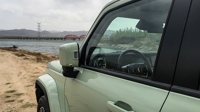 外后視鏡的尺寸不小,與坦克300的壯碩身材比較契合,同樣使用了與車身同色的涂裝。攝像頭也被集成在了后視鏡的外殼上,不會(huì)覺(jué)得攝像頭的存在是一件突兀的事情。在轉(zhuǎn)彎時(shí)這兩枚攝像頭影像可以直接投射到中控屏上,供駕駛員參考。
