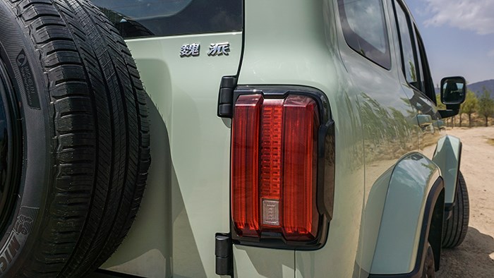 坦克300的車尾使用了越野車經(jīng)典的外掛備胎設(shè)計(jì),這樣的設(shè)計(jì)不僅讓坦克300看起來(lái)更有野性氣息,同時(shí)也不會(huì)讓備胎侵占車內(nèi)空間。尾門采用從左側(cè)開(kāi)啟的平開(kāi)門設(shè)計(jì),牌照框也是位于左下方的位置,車尾最能展現(xiàn)坦克300個(gè)性化的一面,開(kāi)在路上就連尾部也是回頭率較高的存在。