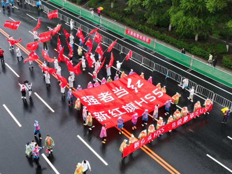 在這個(gè)夏季,3萬多名參賽者再次引燃塞外江城,征戰(zhàn)馬拉松賽道,與新紅旗HS5一起展示“強(qiáng)者當(dāng)紅”的力量。其中,由紅旗車主、員工、經(jīng)銷商、媒體人組成的“新紅旗HS5旗跑團(tuán)”格外引人矚目,百人身穿紅色賽服奔跑在“吉馬最美賽道”上,向大家傳遞著紅旗品牌的自信、活力和向上的鋒芒。