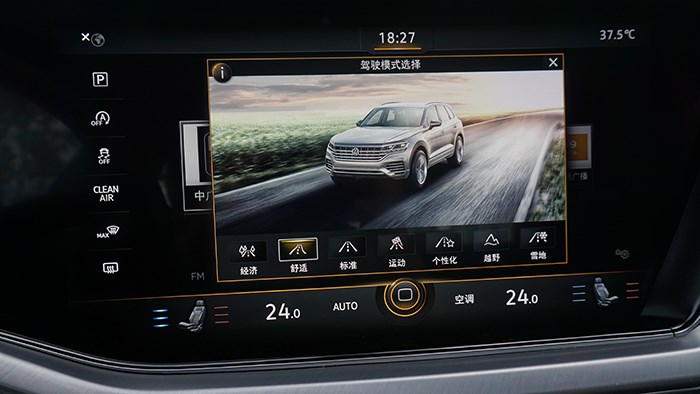 車輛標(biāo)配的4MOTION恒時(shí)四驅(qū)系統(tǒng),最高可傳輸1000牛.米的驅(qū)動(dòng)扭矩。帶有非對(duì)稱動(dòng)態(tài)扭矩分布功能的自鎖差速器作為車輛前后軸的分動(dòng)箱。最高70%的驅(qū)動(dòng)扭矩可傳送至前軸,最高80%的驅(qū)動(dòng)扭矩可傳送至后軸。駕駛者可以從娛樂信息系統(tǒng)和/或4MOTION恒時(shí)四驅(qū)系統(tǒng)主動(dòng)控制的相關(guān)菜單中選擇五種駕駛模式。
