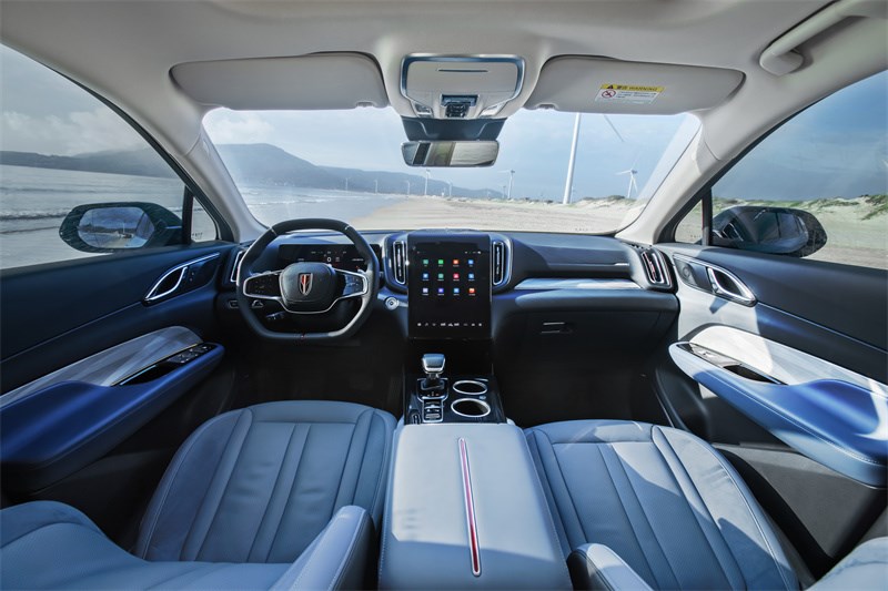 傾“新”顏值,大有風(fēng)范。紅旗HS3創(chuàng)新應(yīng)用紅旗家族式設(shè)計(jì)語(yǔ)言,車身前部,前大燈和“飛翼”飾條貫穿結(jié)合,精巧協(xié)調(diào)、富于韻律之美。個(gè)性熏黑車頂,活力四射。車身側(cè)面,矯健修長(zhǎng)的腰線配合“振翅山河”側(cè)旗標(biāo),盡顯國(guó)潮風(fēng)范。車身尾部,上下分體式設(shè)計(jì)巧妙靈動(dòng),尾燈猶如展開的翅膀,點(diǎn)亮效果驚艷絕倫。紅旗HS3的內(nèi)飾設(shè)計(jì),在紅旗經(jīng)典中軸對(duì)稱布局基礎(chǔ)上注入強(qiáng)烈的運(yùn)動(dòng)氛圍。桶式座椅給予駕駛者極強(qiáng)的包裹感,12.6英寸曲面中控大屏和253色氛圍燈,讓風(fēng)范內(nèi)在更添精致。