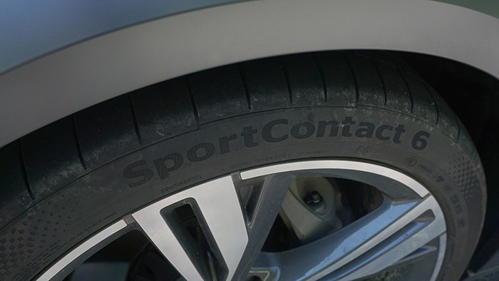 20英寸的輪轂足夠霸氣,馬牌的輪胎規(guī)格為245/45 R20。