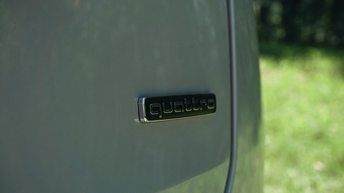 側(cè)裙同樣設(shè)計(jì)感滿滿,深色裝飾的側(cè)裙不僅與車頭下包圍相呼應(yīng),同樣Quattro的標(biāo)志也預(yù)示了這臺Allroad的身份。車尾的裝飾條及品牌LOGO也采用亮黑色的涂裝。