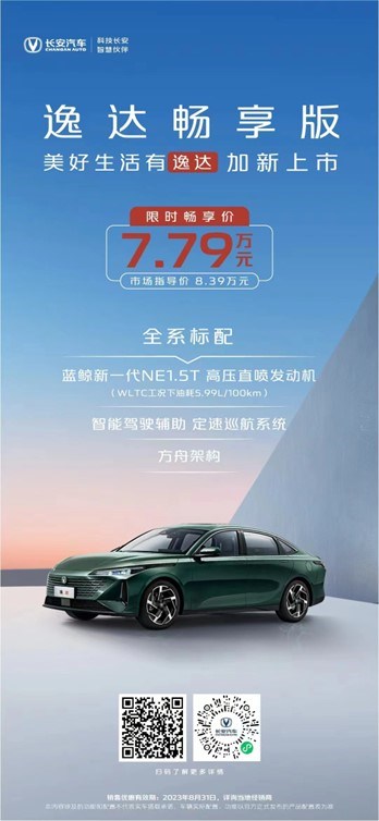 以豐富行程,感受逸達(dá)魅力;以親身體驗(yàn),擁抱美好生活。為讓更多用戶“FUN肆一夏”, 滿足他們的多元用車需求,8月8日,長(zhǎng)安逸達(dá)暢享版驚喜上市,現(xiàn)金直降6000,限時(shí)暢享價(jià)僅需7.79萬(wàn)元。貸款購(gòu)逸達(dá)其他配置車型,首付4-8萬(wàn)元,立享36期低利息;置換購(gòu)車享至高4000置換補(bǔ)貼。寵粉福利,巔峰讓利,讓用戶“滿逸即達(dá)”,綻放更多夏日精彩!