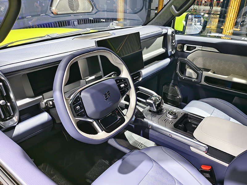 內(nèi)飾方面,新車內(nèi)飾采用撞色設(shè)計,并搭載8155智能座艙。新車提供上下平底的三輻式方向盤,除了撞色設(shè)計還自帶機甲風(fēng),在A柱上還有扶手把手及攝像頭。另外大尺寸的中控屏也有提供,除此還配了小巧的換擋把手。據(jù)悉新車還有涉水感應(yīng)、拖車資質(zhì)、自適應(yīng)識別、自適應(yīng)調(diào)節(jié)主動懸架等。