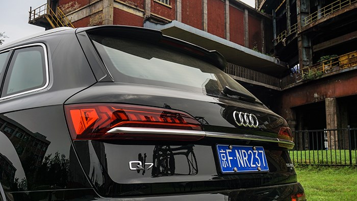奧迪Q7的車尾相比前臉收斂了不少,整體造型與老款車型類似,不過在全新的尾燈用一條鍍鉻裝飾連接在一起,而下方的排氣也更加粗壯。