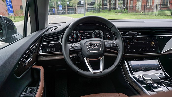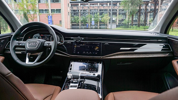 全新的車機(jī)系統(tǒng)搭配上全液晶儀表盤,共同打造了奧迪智能座艙,可通過方向盤處的“VIEW”按鍵進(jìn)行切換。這輛奧迪Q7上,還配備了B&O音響。