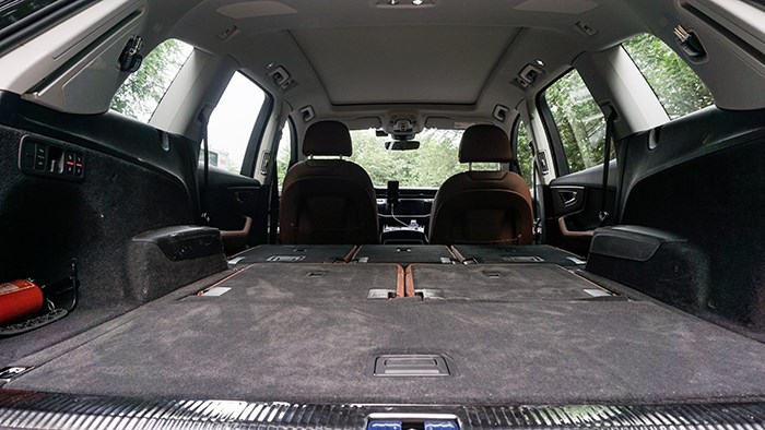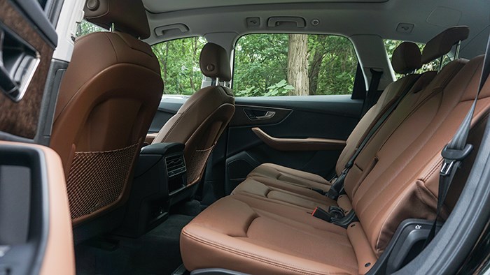 奧迪Q7的縱向車身尺寸具備一定優(yōu)勢,這在空間方面也有所體現(xiàn)。試駕車輛采用2 3 2式7座布局,前排和第二排空間自然毫無問題,第三排空間也能滿足短途出行需求。座椅舒適性方面,奧迪Q7繼承了奧迪家族一貫的側(cè)重支撐性的設(shè)定,不過填充物并不是一味地堅(jiān)韌,而是在表層提供了較為柔軟的觸感,身體貼合性令人滿意。