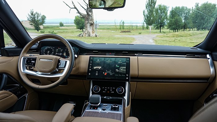 內(nèi)飾方面,全新攬勝繼續(xù)展現(xiàn)簡(jiǎn)潔風(fēng)格,在用料方面,其采用了大量的高檔皮質(zhì)材料以及木紋飾板,讓其內(nèi)飾的豪華感和精致感更加突出,打造出更具有科技氛圍的豪華感。