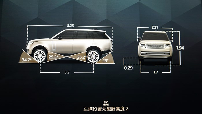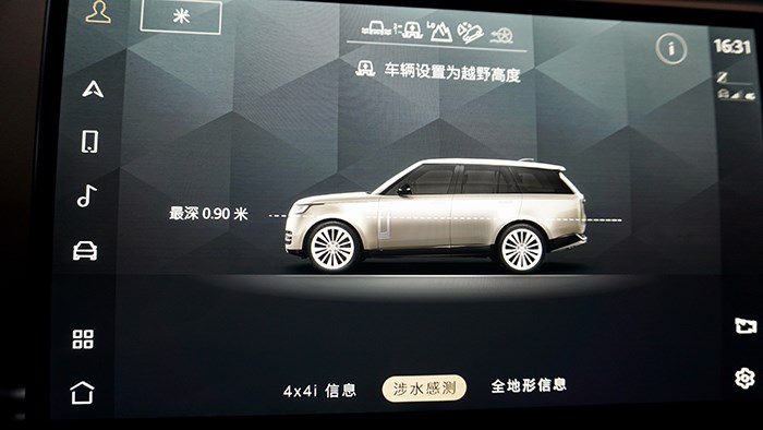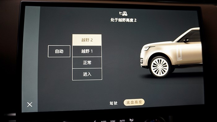 新款的路虎攬勝在越野模式上,底盤高度接近于30公分,接近角可達(dá)34.7度,離去角29度,縱向通過角25.2度。涉水深度可達(dá)0.9m,此外該車還配備有主動(dòng)轉(zhuǎn)向,后橋差速鎖以及中央差速器。