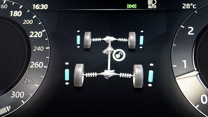 全新攬勝加長(zhǎng)版均匹配8速手自一體變速器,同時(shí)全系標(biāo)配全時(shí)四驅(qū)、中央差速鎖、后橋差速鎖、四輪轉(zhuǎn)向、空氣懸架、懸架軟硬調(diào)節(jié)功能等,其中,裝備的48伏主動(dòng)式側(cè)傾控制系統(tǒng),可瞬間向防傾桿輸出1400牛米的扭矩,力求最大程度保證車身穩(wěn)定性;主動(dòng)式后電子差速鎖可在高速過彎、濕滑路面或越野車輪懸空等情況時(shí)有效增強(qiáng)后輪牽引力。此外,第二代智能全地形反饋適應(yīng)系統(tǒng)具備八種駕駛模式,可根據(jù)路況自動(dòng)調(diào)節(jié)底盤系統(tǒng),也可啟用自定義模式,根據(jù)自身偏好設(shè)定底盤風(fēng)格。