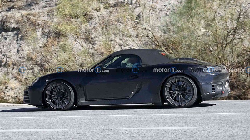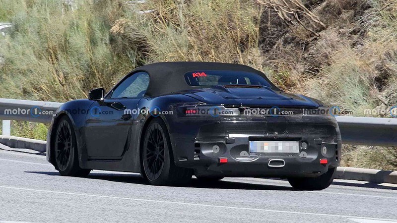 車身側(cè)面來看,新車搭載了全新樣式的低風(fēng)阻造型輪圈,內(nèi)部配備大尺寸剎車卡鉗,預(yù)示了不俗的性能。車尾部分,新車依舊保留中置排氣裝飾十分搶眼,正中央的位置配備充電接口,預(yù)計(jì)這里將不會再有718 Boxster或718 Cayman的銘牌。尾燈并沒有采用貫穿式設(shè)計(jì),燈腔內(nèi)部或采用雙橫條的造型設(shè)計(jì)。