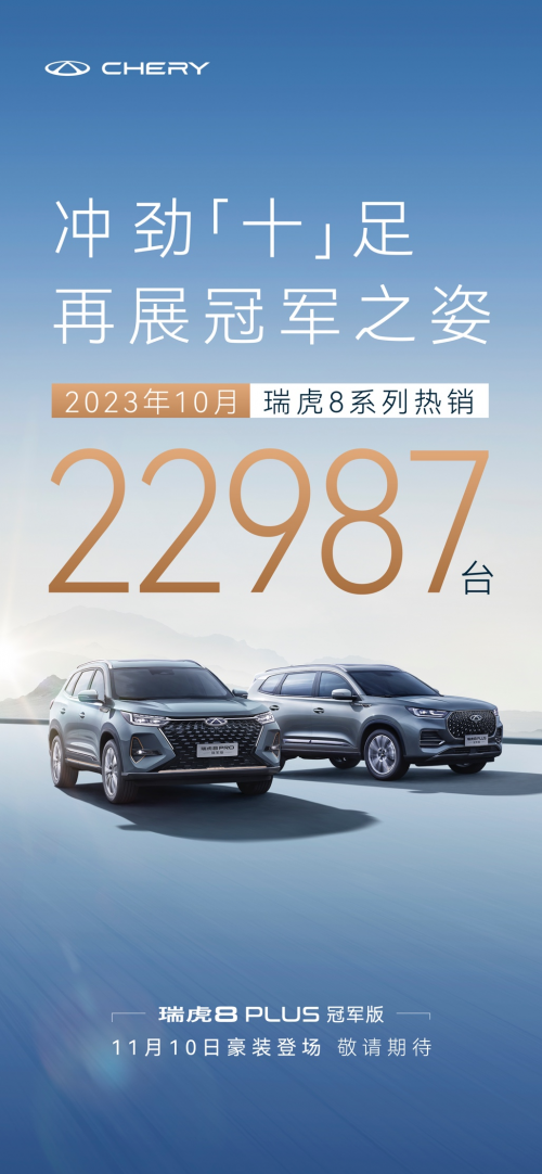 一款冠軍產(chǎn)品誕生的背后,一定有著強(qiáng)大的“冠軍底蘊(yùn)”。10月份,瑞虎8家族銷量22987輛,再一次展現(xiàn)冠軍“高度”和“速度”。目前,瑞虎8家族不僅贏得全球80萬用戶的熱愛與支持,遠(yuǎn)銷80多個國家和地區(qū),更力斬32項(xiàng)賽事桂冠、14項(xiàng)產(chǎn)品榮譽(yù)及多項(xiàng)海外榮譽(yù),成為征服賽場的冠軍、用戶心中的冠軍、享譽(yù)全球的冠軍,是中國品牌真正的全球車、國際車、冠軍車。此次瑞虎8 PLUS 冠軍版即將上市,無疑將進(jìn)一步豐富瑞虎8冠軍家族的產(chǎn)品矩陣,加速奠定瑞虎8 冠軍家族10-15萬元主流SUV首選地位。