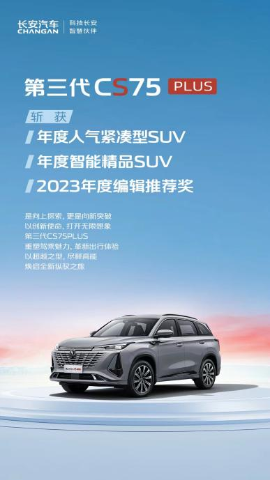 而作為中國(guó)品牌SUV的代表,第三代CS75PLUS以不斷進(jìn)階的硬核實(shí)力更是獨(dú)中三元,一口氣攬獲新車評(píng)網(wǎng)“年度人氣緊湊型SUV”、車市紅點(diǎn)“年度智能精品SUV”,以及易車網(wǎng)頒發(fā)的“2023年度編輯推薦獎(jiǎng)”三項(xiàng)至高殊榮,體現(xiàn)了各方對(duì)“明日座駕”的一致認(rèn)可。