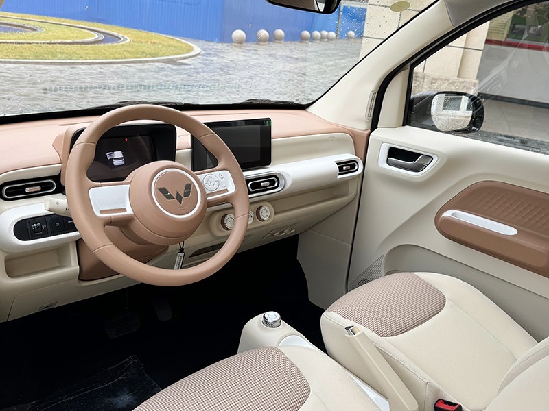 外觀方面,新車前臉大燈采用橢圓形造型,并且貫穿式飾板。前包圍搭配橢圓形白色裝飾件,兩側(cè)還有圓形裝飾,頗為可愛。C柱還有馬卡龍英文標識,車尾與車頭保持一致。新車提供輕芒黃、奶杏咖等5種車身配色。車身尺寸方面,新車長寬高分別為3064*1493*1614mm,軸距2010mm。