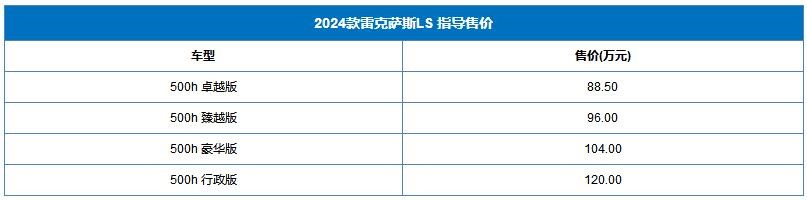 2024款雷克薩斯LS正式上市 售價(jià)為88.50-120.00萬