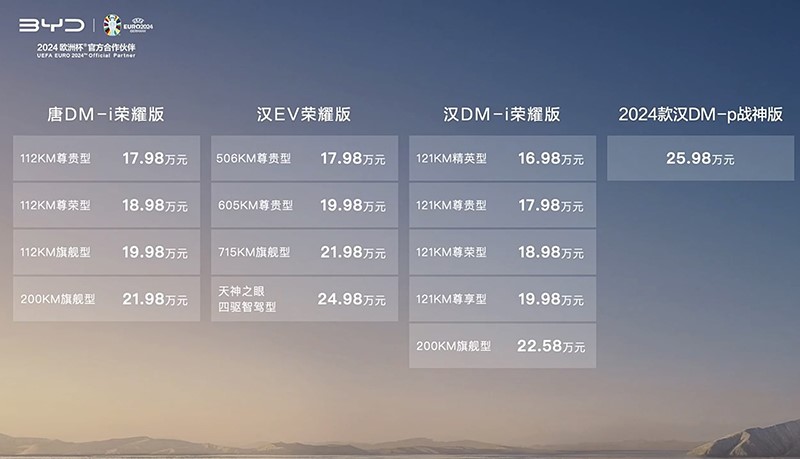 2月28日,比亞迪唐DM-i榮耀版正式上市,共推出4款車型,售價區(qū)間為17.98-21.98萬。