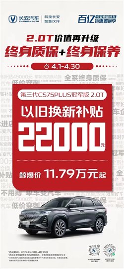 有一說(shuō)一,提供整車終身質(zhì)保的車企已經(jīng)鳳毛麟角,像長(zhǎng)安汽車一樣致力于為用戶創(chuàng)造更多價(jià)值,將整車終身質(zhì)保和整車終身免費(fèi)保養(yǎng)同步給到用戶的更是絕無(wú)僅有?!半p保無(wú)憂”政策的落地,無(wú)疑是對(duì)消費(fèi)者權(quán)益“天花板”級(jí)別的保障。讓消費(fèi)者買得安心,用得放心。此外,長(zhǎng)安汽車還以超越用戶期待的造型設(shè)計(jì)、動(dòng)力性能等為用戶提供極致出行體驗(yàn)。相信隨著“雙保無(wú)憂”政策的推進(jìn),更多用戶將加入長(zhǎng)安大家庭,共享品質(zhì)新生活。國(guó)家隊(duì)全面下場(chǎng)了,還在等什么?購(gòu)買UNI-V2.0T和第三代CS75PLUS冠軍版2.0T,千載難逢的福利來(lái)了,千萬(wàn)別錯(cuò)過(guò)!