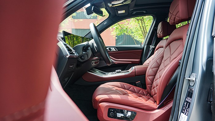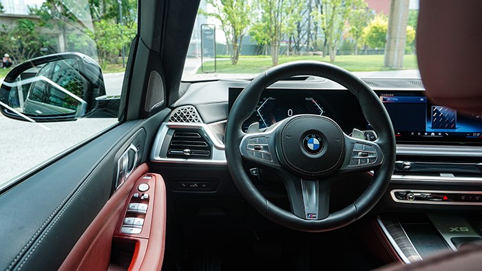 雖然在視覺上是全新改款的,但是對于“實(shí)用”和“豪華”的理解,華晨寶馬X5上的這套內(nèi)飾設(shè)計(jì)顯然更好的詮釋了。車內(nèi)選用了寶馬最經(jīng)典的黑色/火山紅配色,一定程度上增強(qiáng)了運(yùn)動(dòng)感。經(jīng)典的M運(yùn)動(dòng)方向盤帶有電加熱功能,角度調(diào)節(jié)也是電動(dòng)的。