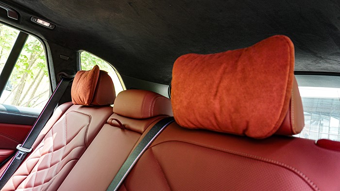 國產(chǎn)版全新寶馬X5最大提升就是軸距加長了130mm,也就是說后排縱向空間增加了130mm,這對于后排乘客的腿部空間當(dāng)然是極其友好的。后排座椅坐墊也進(jìn)行了加厚,并略微調(diào)大了后排座椅靠背的角度。這臺(tái)頂配尊享版后排座椅還帶有電加熱功能。