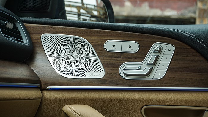 奔馳GLS 450 4MATIC豪華型配備了氛圍燈光系統(tǒng),通過燈光的變化和調(diào)節(jié)營(yíng)造出舒適的氛圍,增加內(nèi)飾的豪華感和科技感。13喇叭的Burmester柏林之聲音響效果非凡。