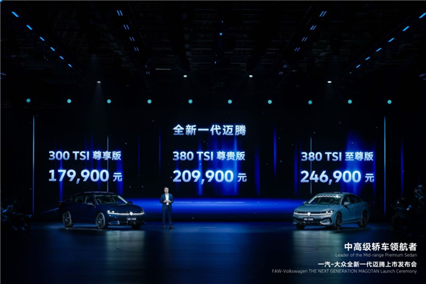 7月9日,一汽-大眾全新一代邁騰正式上市。新車推出300TSI尊享版、380TSI尊貴版、380TSI至尊版三大車型,售價(jià)分別為17.99萬元、20.99萬元、24.69萬元。