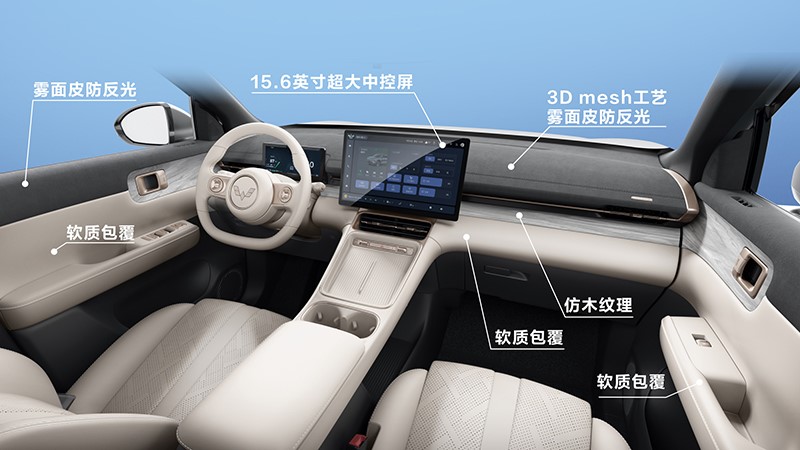 內(nèi)飾方面,新車和五菱星光布局頗為相似。15.6英寸大尺寸懸浮中控屏搭配8.8英寸液晶儀表,搭載Ling OS靈犀系統(tǒng),并提供全新平底雙輻式方向盤。在中控臺(tái)及車門還有類似麂皮材質(zhì)及木紋飾板裝飾。新車提供了電子駐車、自動(dòng)駐車、能量回收等過年。車內(nèi)提供了5座布局及3種內(nèi)飾配色。