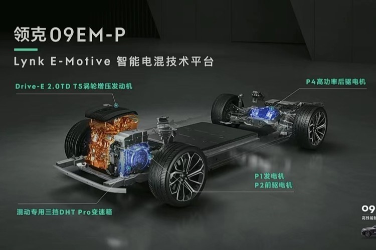 雖然目前官方暫未披露具體信息,但個(gè)人猜測(cè)很可能是類(lèi)似領(lǐng)克09 EM-P的電混技術(shù),包括重新調(diào)校的2.0T混動(dòng)專(zhuān)用發(fā)動(dòng)機(jī),以及前橋P1 P2雙電機(jī)(也有可能是類(lèi)似領(lǐng)克08的P1 P3雙電機(jī)),外加獨(dú)立后橋P4電機(jī)驅(qū)動(dòng)。