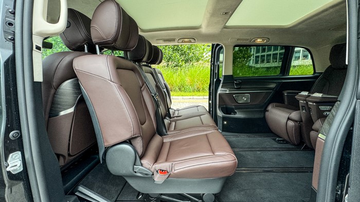 第二排及第三排座椅的布局多樣化是這一次改款值得推薦的內(nèi)容,如圖所示,這是“會客模式”,原本的第三排被安裝到第二排朝后,第二排航空座椅被布置到第三排,空間得以最大化利用,可以稱作奢侈。