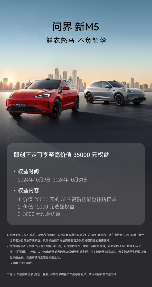 問界新M5不僅讓智能化出行從概念變?yōu)楝F實,也使智能出行變得更加大眾化和普及化。特別是如今問界新M5還推出了一系列優(yōu)惠購車權益活動。在2023年10月31日之前訂購問界新M5的用戶,將享受高達35000元的購車權益,包括價值20000元的高階智能駕駛功能包補貼、12000元選配優(yōu)惠、以及3000元現金權益補貼。這一活動將大大降低購車成本,讓更多消費者能夠以更實惠的價格體驗這款高科技智能座駕。如果你也對問界新M5充滿好奇,不妨前往鴻蒙智行的線下體驗店,親自感受這款車帶來的便捷和智能駕駛體驗。