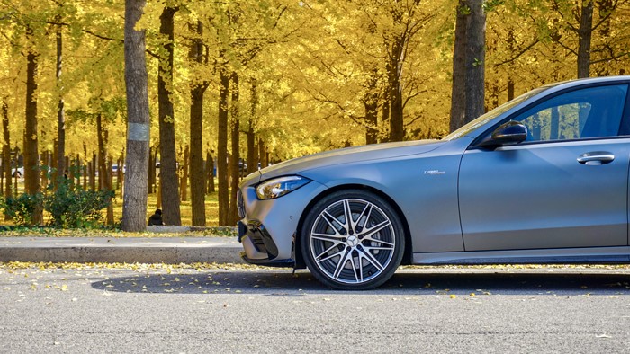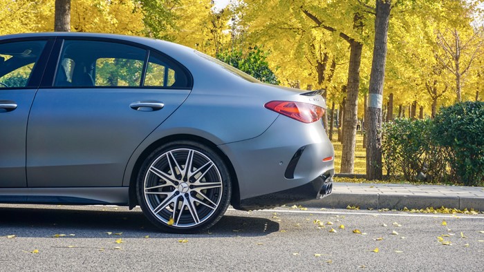 AMG C43的輪廓設(shè)計凸顯了運動轎車的特性,配備了大尺寸的AMG輪轂,搭配運動型側(cè)裙,營造出強烈的運動氛圍。